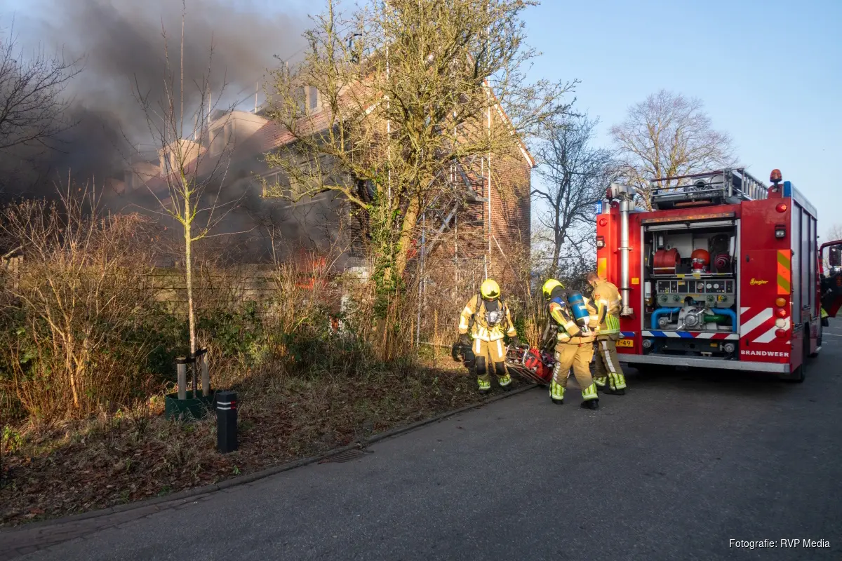 Bij aankomst van de brandweer bleek de brand te woeden in de achtertuin van een woning. Bij de woning waren dakdekkers bezig met het dak en is er vermoedelijk hete bitumen omlaag gevallen op isolatiemateriaal wat in de tuin lag.