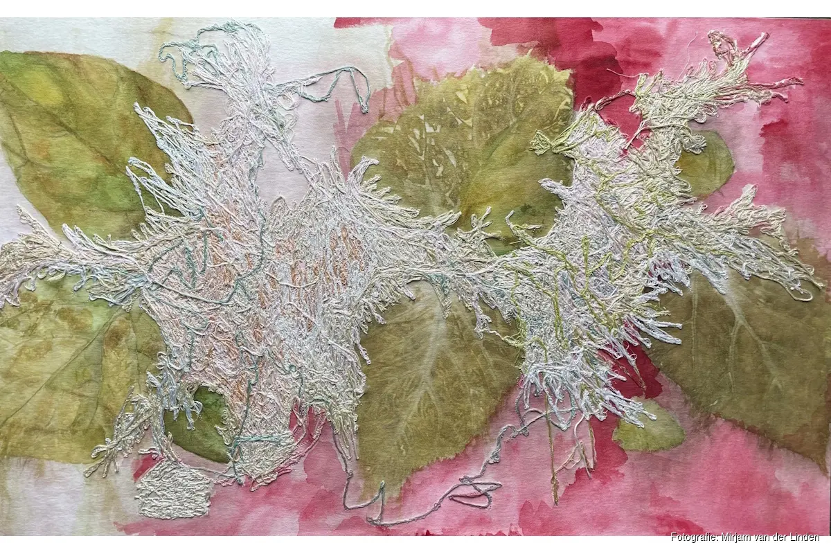 Mirjam van der Linden is textielkunstenaar en werkt met denim en eco-prints. In haar werk verweeft zij mens, natuur en hergebruik tot een gelaagde beeldtaal. Gedragen jeans dragen sporen van een vorig leven; bladeren laten hun afdruk achter in stof en papier. Door naaien, borduren en verven ontstaan verstilde beelden over tijd, vergankelijkheid en herinnering. Haar werk nodigt uit tot aandachtig kijken en laat zien dat wat al bestaat nieuwe verhalen kan dragen.